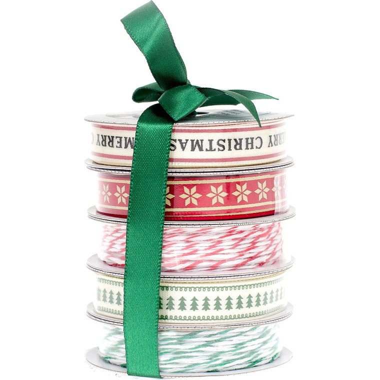Ribbon Merry Christmas This ribbon is perfect for holiday paper crafts of all kinds This package contains five 3 yard spools of 3 8 inch wide ribbon in assorted designs Imported